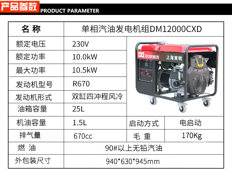 * 表示必填采購:單相10kW小型汽油發(fā)電機組DM12000CXD