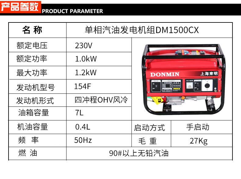 單相1kW小型汽油發(fā)電機(jī)組DM1500CX