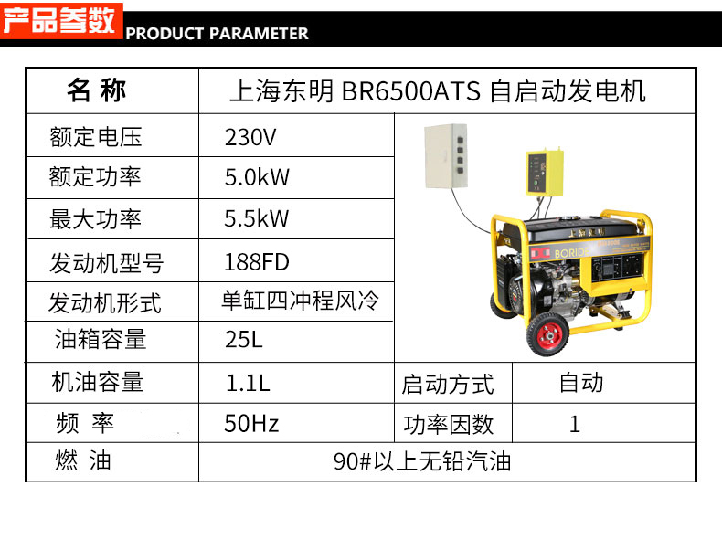 * 表示必填采購(gòu):?jiǎn)蜗?kW無(wú)人值守ATS小型汽油發(fā)電機(jī)組BR6500ATS
