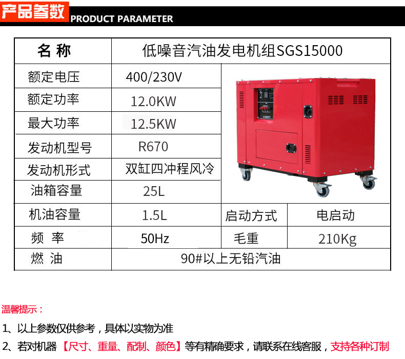 * 表示必填采購(gòu):三相12kW低噪音通信基站維護(hù)用汽油發(fā)電油機(jī) SGS15000